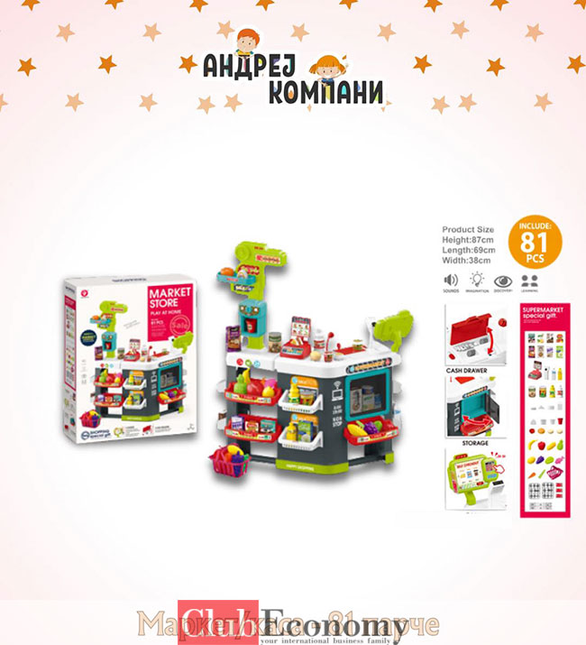 Компанијата АНДРЕЈ КОМПАНИ нуди голем и разновиден избор на детски играчки и бебешка опрема, со повеќе од 5.000 видови производи, број што секојдневно се надополнува... Особено сме задоволни од застапството на брендот CHIPOLINO за бебешка опрема, кој на македонскиот пазар го носиме повеќе од седум години. Исто така, застапници сме и за четири брендови кои бележат експанзија во однос на квалитетот и асортиманот на производите што ги нудат на пазарот, а тое се PILSAN, DEDE, BILDO и DOLU.