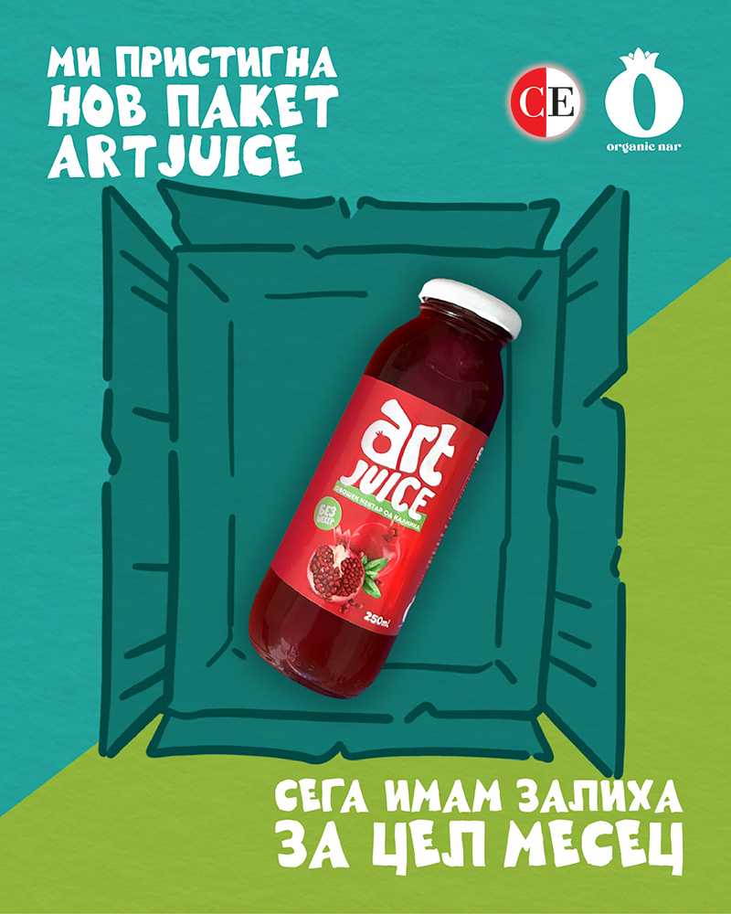 Палетата на производи на брендот ART JUICE се базира исклучиво преку производство на сок од свежо овошје, без конзерванси и адитиви. ОРГАНИК НАР произведува вистински сок кој е совршена комбинација на органски одгледано овошје и процес на подготовка согласно врвните стандарди за квалитет.
